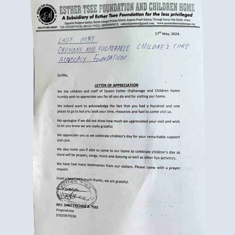 Visitation to Esther Tee Foundation and Children Home
